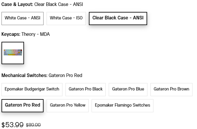 Clear Black case, çünkü ışığı daha güzel gösteriyor. Ben Gateron Pro yellow öneririm. Kullanan çoğu kişide onu öneriyor özellikle bu klavyede. İstersen Red'de seçebilirsin.