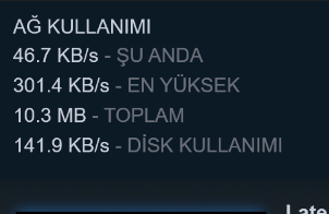 Aşağıda mevcut hız değerlerimi ve Steam'den aldığım indirme değerlerinin görselini bıraktım.