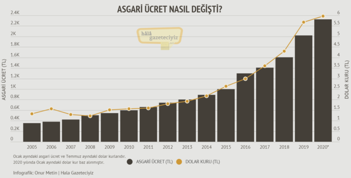 Asgari ücret, tutarı geçen yıla göre yüzde 21,56 oranında artışla net 2 bin 825 lira 90 kuruş.