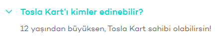 12 yaşından büyüksen Tosla Kart sahibi olabilirsin diyor.