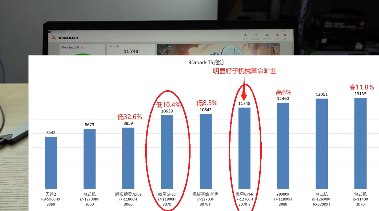 Yeni GP66 eski GP66'dan 3DMark Time Spy testinde %10.4 daha fazla puan almış.