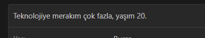 Tekrar yazıyorum. Beni yaşımdan vurmaya çalışan arkadaşlar. Ben bu siteye üye olurken 20 yaşındaydım ve oraya da öyle yazdım. Sonra orayı hiç düzeltmedim. Öylece kalmış orası. 97'liyim. İnanın ya da inanmayın, gerçek bu.