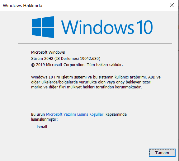 22.11.2020 tarihinde Windows 10 Pro yüklü olan bilgisayarıma adresinden 20H2 güncelleştirmesini yükledim.
