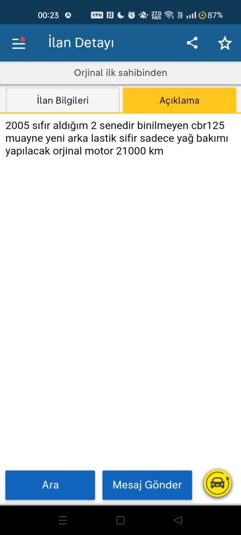 Merhaba şu an Antalya'da stajdayım ve stajım bittikden sonra motor alacağım. 21 binde bir 2005 model Honda CBR125R gördüm alınır mı? Eğer alınmazsa bir motor önerisi yapar mısınız? 125 CC ama 120-130 hız arası gitsin motor, biliyorum 125 CC için zor ama bir bakın.