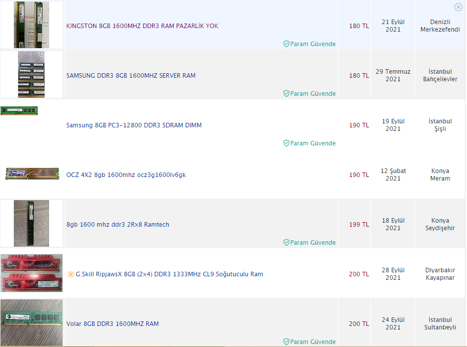 3-) RAM: DDR3 8 GB 1600 MHz (200 TL)