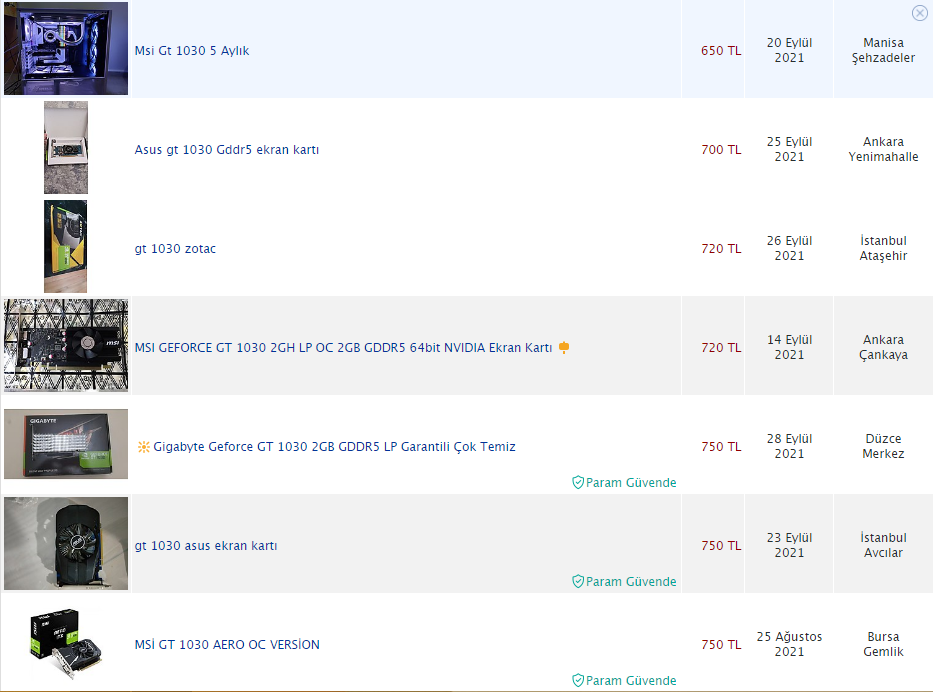 4-) Ekran kartı: GT1030 (700 TL [900 TL SIFIR])