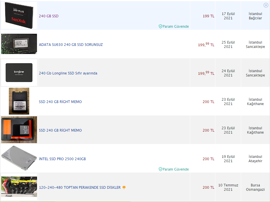 5-) Depolama: 240GB SSD (200 TL[260-270 TL SIFIR])
