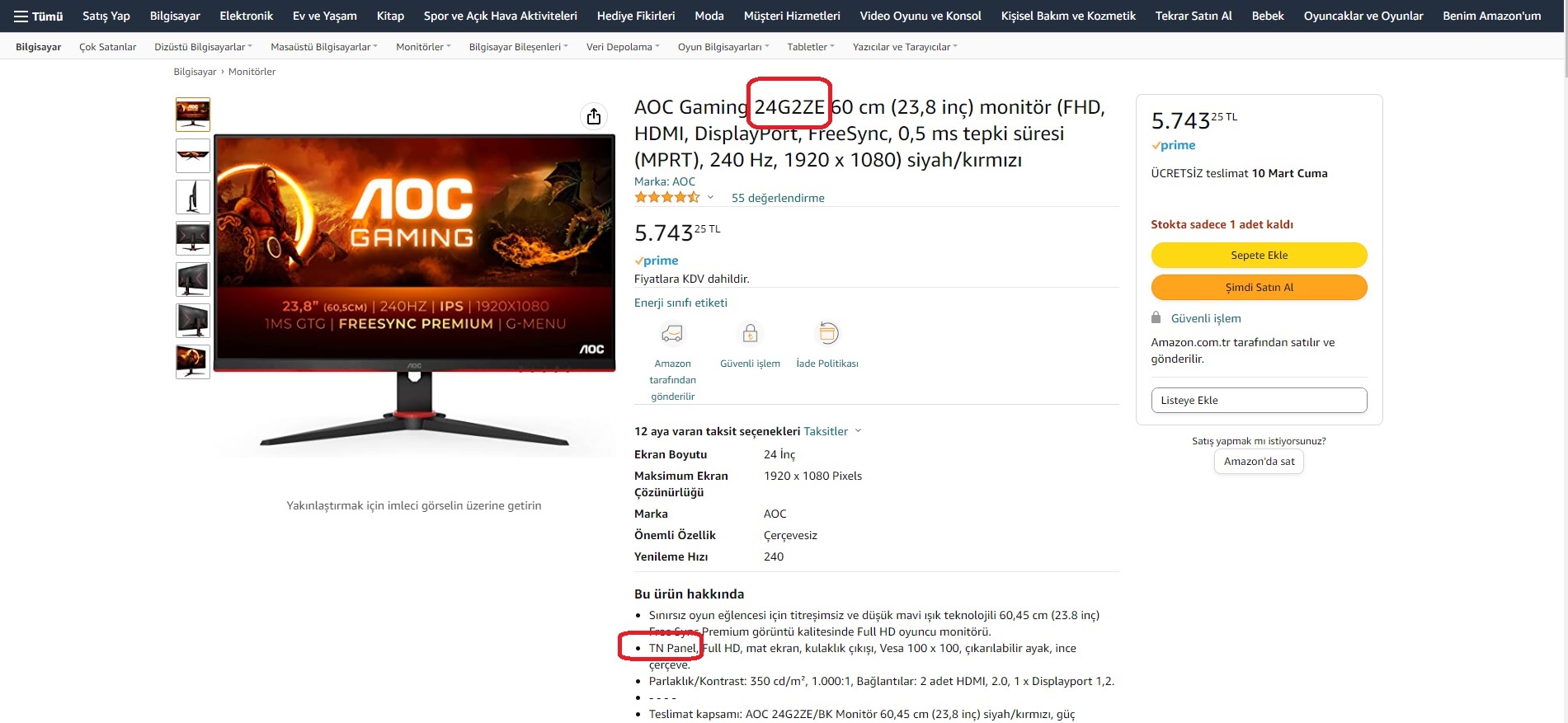Bu monitörün amazonda TN panel olduğu yazıyor. Bizimkiler yanlış yazmış olabilir mi ?