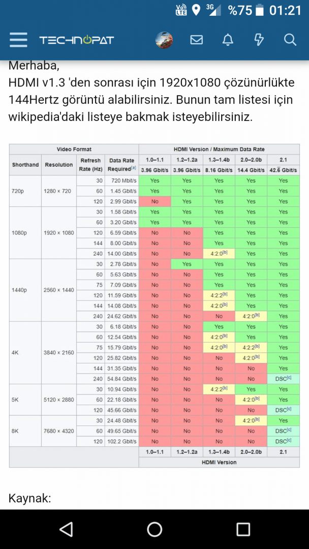 Peki HDMI kablosuyla 240 Hz almam mümkün değil mi?