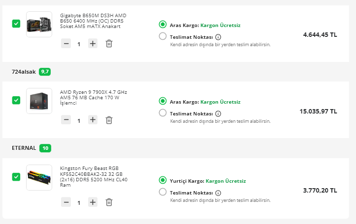 RTX 3070'li bir sistemim var ve 24K bütçem var. PC'yi yükselteceğim. Sizce seçtiklerim uygun mudur? Bu fiyatlara daha mantıklı parçalar bulunur mu?
