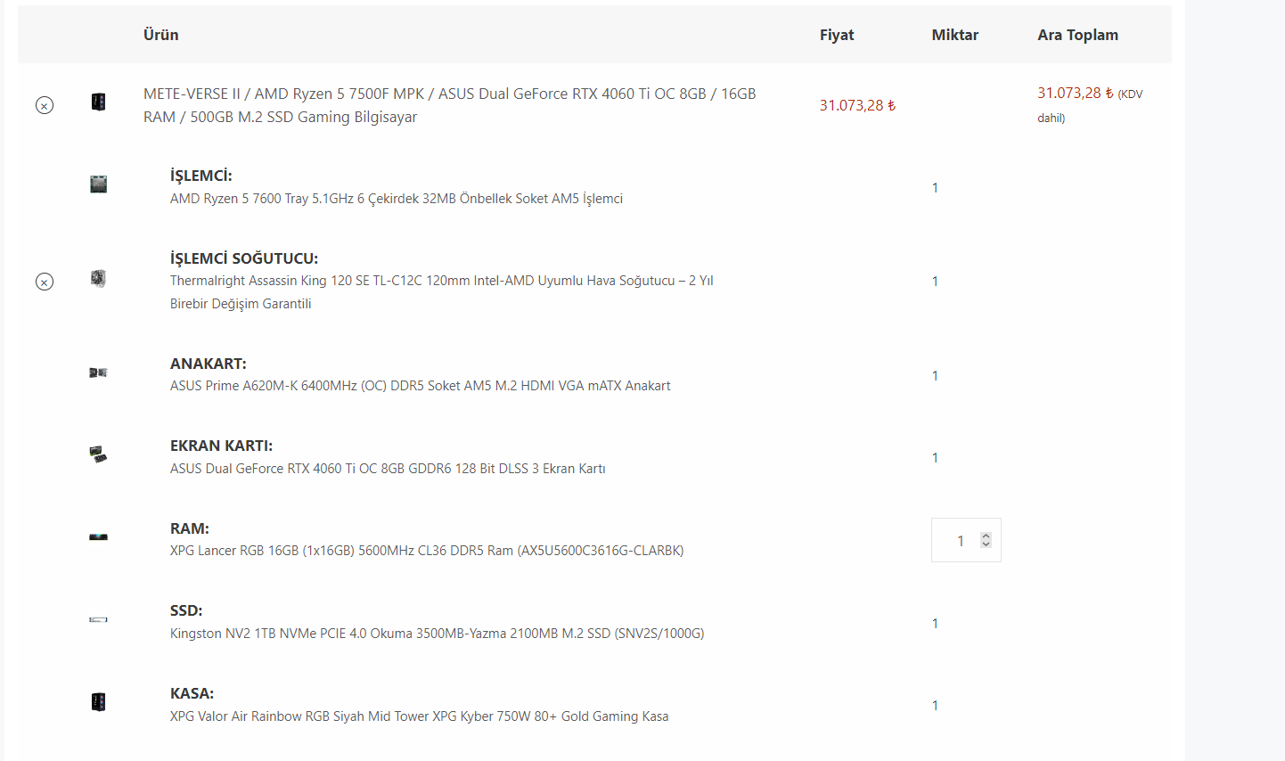 Ucuzdu ondan sonraki işlemci bende ekleyeyim dedim 🙃 7600XT ile Ti arasında pek fark yoksa 4060 Ti seçeceğim bende hiç AMD kullanmadım zaten şimdiye kadar. SSD için ne dediğinizi anlamadım benim attığım ekran görüntüsündeki eklediğim 1TB SSD'den mi bahsediyorsunuz yoksa diğer sistemdeki mi?