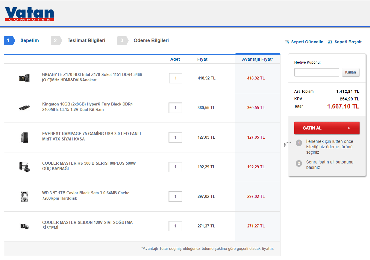 Benim sistemin o fiyata nasıl geldiğini soracak olursan hard disk almayacağım yalnızca 240gb ssd (harici 1.5tb hard diskim var).