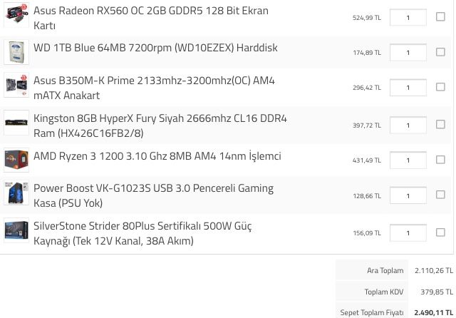 AMD Ryzen™ 3 1200 3.1GHz, GTX1050TI 4GB, 8GB DDR4, 1TB HDD Oyun Bilgisayarı - Oyuncu PC