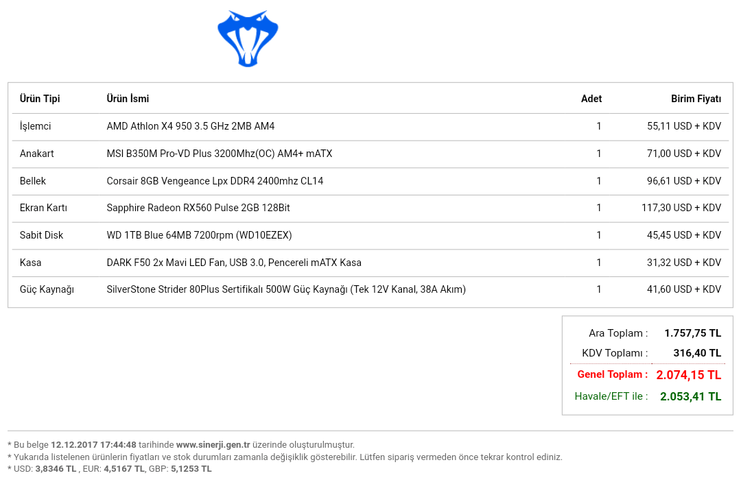 @cagatayefe O sistemde A320 serisi anakart var. Yani işlemciyi O.C edemezsiniz. Ayrıca benim sistemimdeki PSU çok daha kaliteli. Aynı zamanda benim seçtiğim monitörde HDMI girişi var. Ayrıca o sistemin fiyatı 2700₺'ye yaklaşmış. Ben O.C yapmayacağım ve bütçemi 2700₺'ye kadar aşabilirim derseniz söyleyin bana. A320 serisi anakart seçerim, oradan artan para ve aştığınız 200₺ ile CPU veya GPU güçlendirmesi yapabilirim.