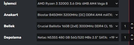 Ram zaten 2x8. SSD konusunda ise 480 GB Patriot Burst mantıklı bir seçim olabilir. 🙂