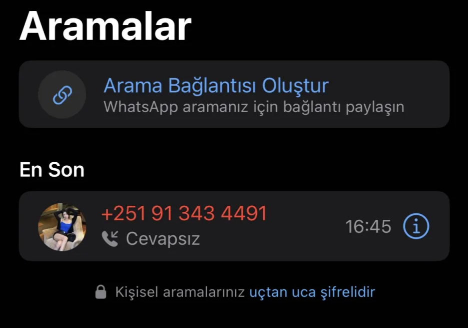 Arkadaşlar, bugün WhatsApp'a girdim, yabancı bir numaradan arama geldiğini gördüm. Ayrıyeten de iki resim bıraktım bakarsınız.
