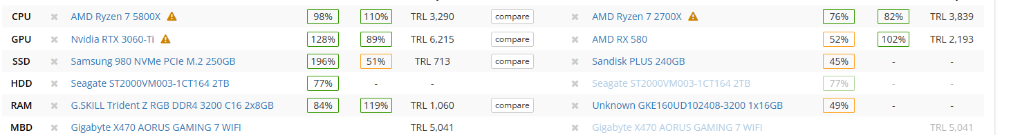 Dostlarım sağdaki ekipmanlar benim. Solda ki ise yükseltmek istediğim ekipmanlar. Sorularım işlemciler ile alakalı. 2700X'ten 5800X'e geçmeyi düşünüyorum. Ancak çok ısınan bir işlemci olduğunu gördüm ve fansız geliyormuş. 2700X in kendi soğutucusunu çıkarıp 5800X'e taksam yeterli olur mu? Yoksa dışarıdan soğutucu mu almam gerekiyor? Ayrıca 5600X ile 5800X arasında ciddi fiyat farkı var. Değer mi? 3060 Ti darboğaz yapar mı? Ben bu riskinden dolayı 5800X tercih ettim. Ne kadar mantıklı?