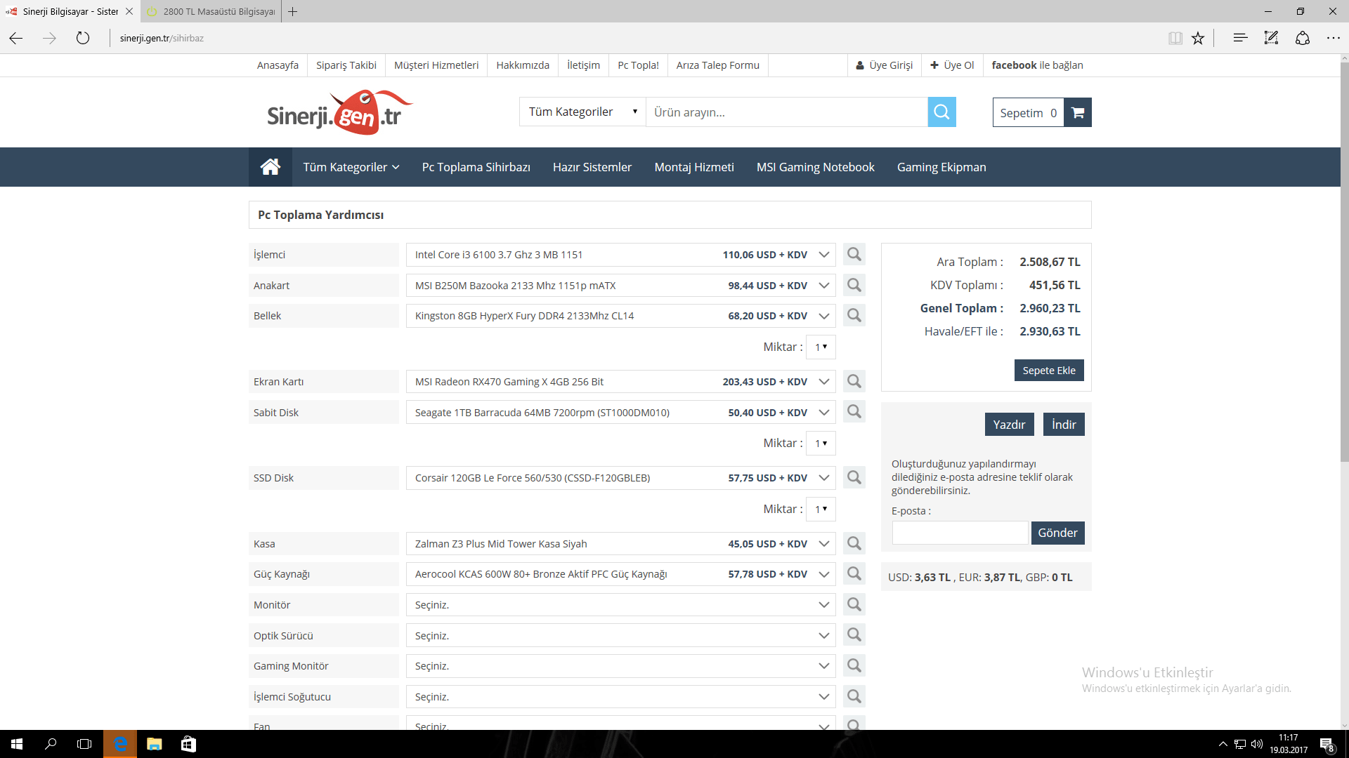 İntel i3 6100 yerine Pentium G4560 alması daha iyi olur. Fiyat farkı 300 tl kadarken performans farkı en fazla %10- %15 ve 7. nesil.