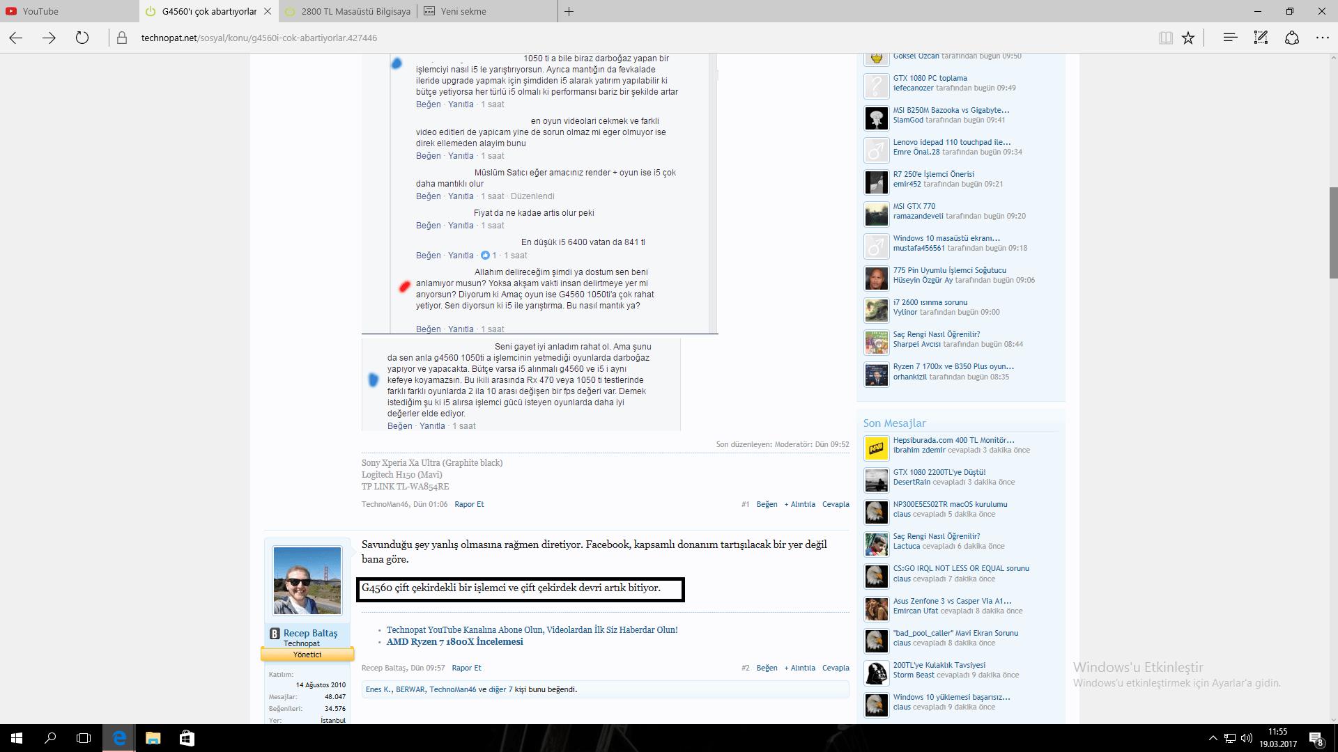 Ryzen 5 bile 11 Nisan'da çıkıyor. Ryzen 3' ler muhtemelen mayısın sonlarını bulacağı için şimdilik G4560 doğru bir seçim olur.@NightFuryAmca Önerdiğiniz işlemci çift çekirdekli ve çift çekirdek devri artık bitiyor.