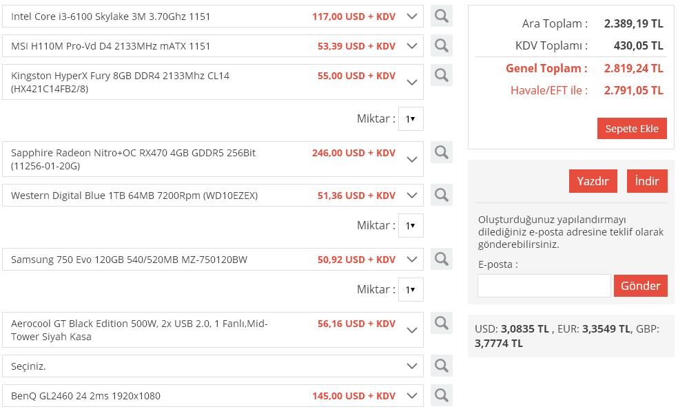 Dilersen ekran kartı olarak GTX 1050 bekle. Daha ucuz olacak. Ayrıca webdenal.com'dan alarak 100-200 tl daha ucuza getirebilirsin. Monitor de sana kalmış.