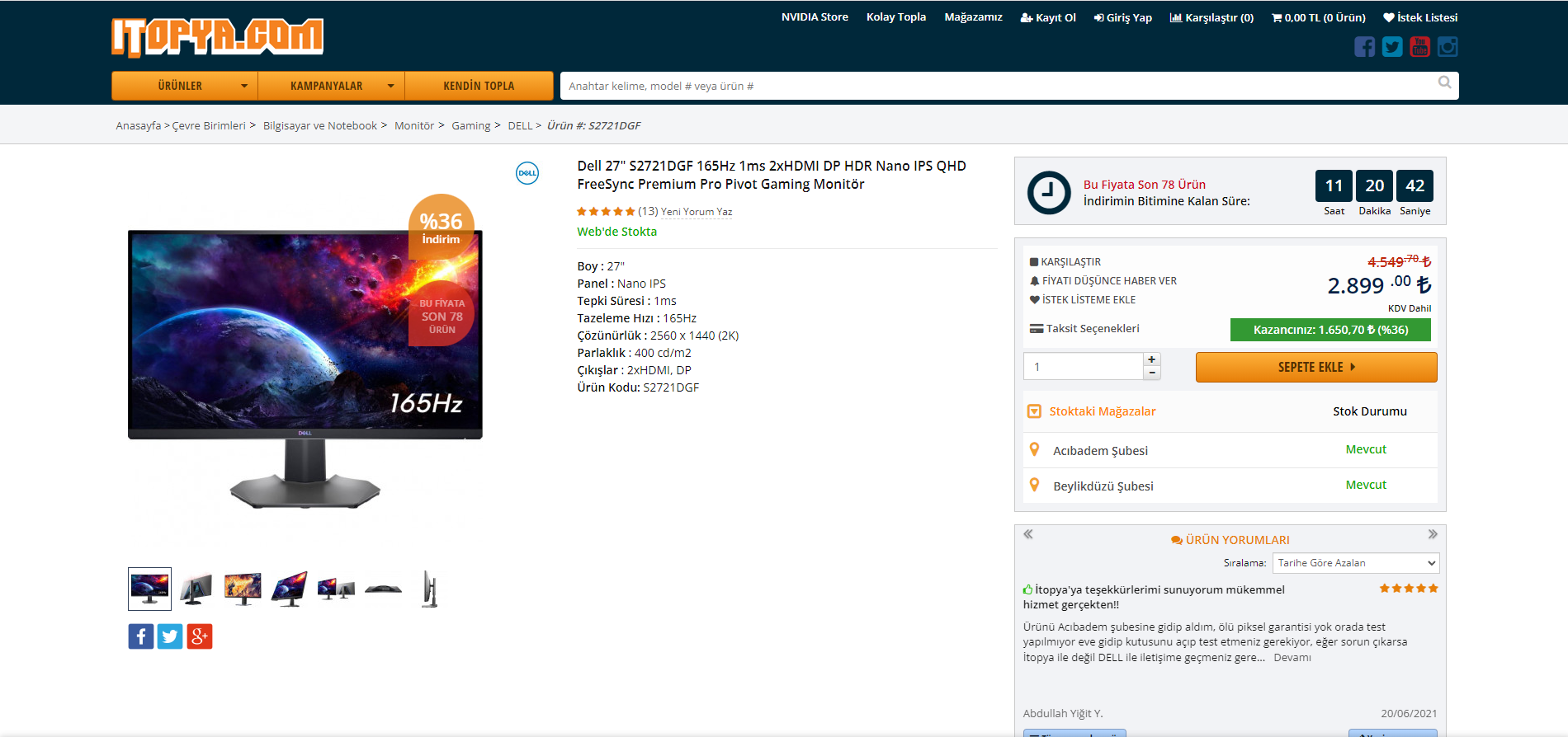 3 ay önce 2k oyun için sistem topladım. Henüz ekran kartını alamadım bu yüzden monitörü alıp kullanmış değilim lakin ekran kartını aldığımda alacağım monitör fiyatı eski fiyatına düşerse (3000-3500TL) kesinlikle bu monitör olacaktır. 3 ay önce A'dan Z'ye her detayı araştırıp 3000TL için en iyi monitörün bu olduğu kanısına varmıştım. Şu an sizin konunuzu görüp fiyatına bakayım dedim daha 1 ay olmadı 5k idi şu an 6kya çıkmış gerçekten üzücü. Aşağıdaki ss 3 ay öncesine ait. Fiyat takibi için almıştım 😄 Pek yardımcı olmayacaktır mesajım ama belirtmek istedim bu üzücü durumu.