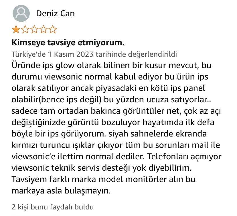 Amazon'daki Yorum: Kimseye tavsiye etmiyorum. Şu ürünün Amazon yorumuna göz atın: Viewsonic VX2780J-2K 27” 2K 170Hz IPS Gaming Monitör