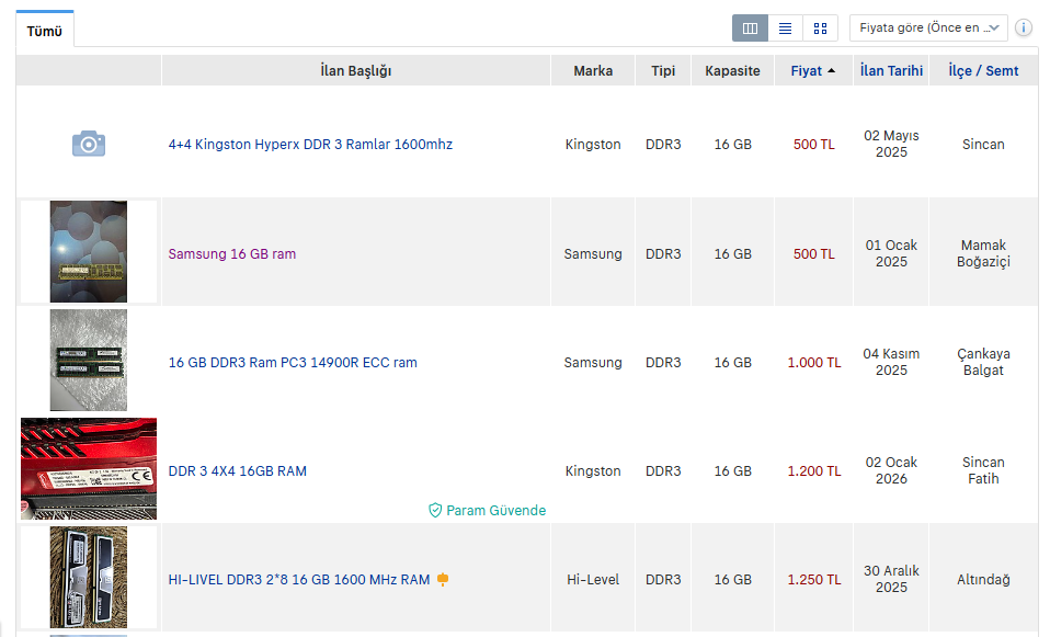 Kingston ValueRAM 16GB (2×8GB) DDR3-1600 CL11 almaya karar verdim ama Akakçe'den bakınca 900 ila 2000 arasında bir fiyatı var. Niye bu kadar büyük bir fiyat farkı var ve ucuzunu alırsam daha mı kötü olur, ne yapmalıyım?