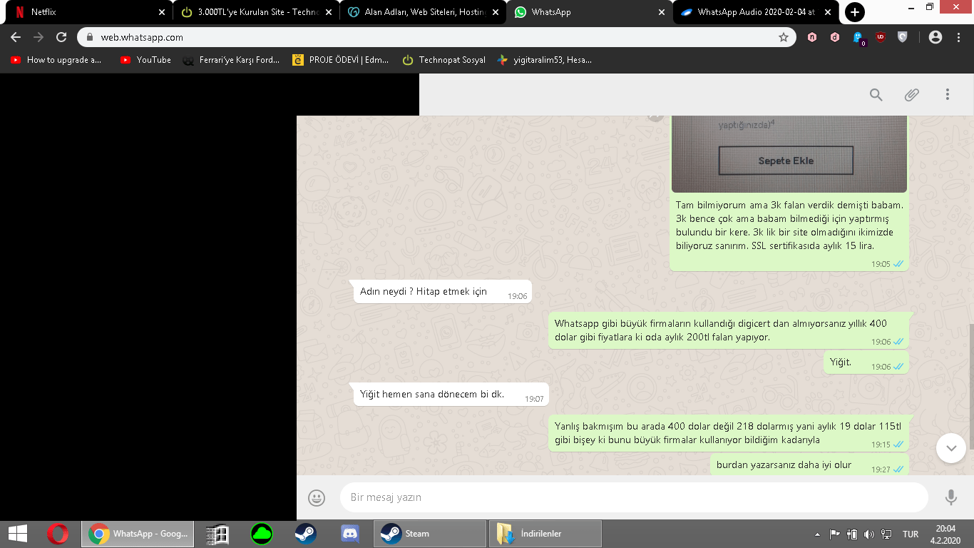 60 domaine, 300 hostinge verdiğini söylemiş. 2500'de siteymiş. Editörlük de 500. (Buradaki 60 domain ve 300 hosting abartılı rakamlar değil, olabilir diyebiliriz. Ama siteye 2500 abartılı bir rakam, editörlüğü da genelde bu tarz e-ticaret siteleri için bir butonla yapılabilecek şekilde kodlarlar ve siteye eklerler. Zaten satılacak şeyler belli her gün binlerce ürün eklenmeyeceğine göre editörlük için ayrı para almak mantıklı gelmiyor bana.)
