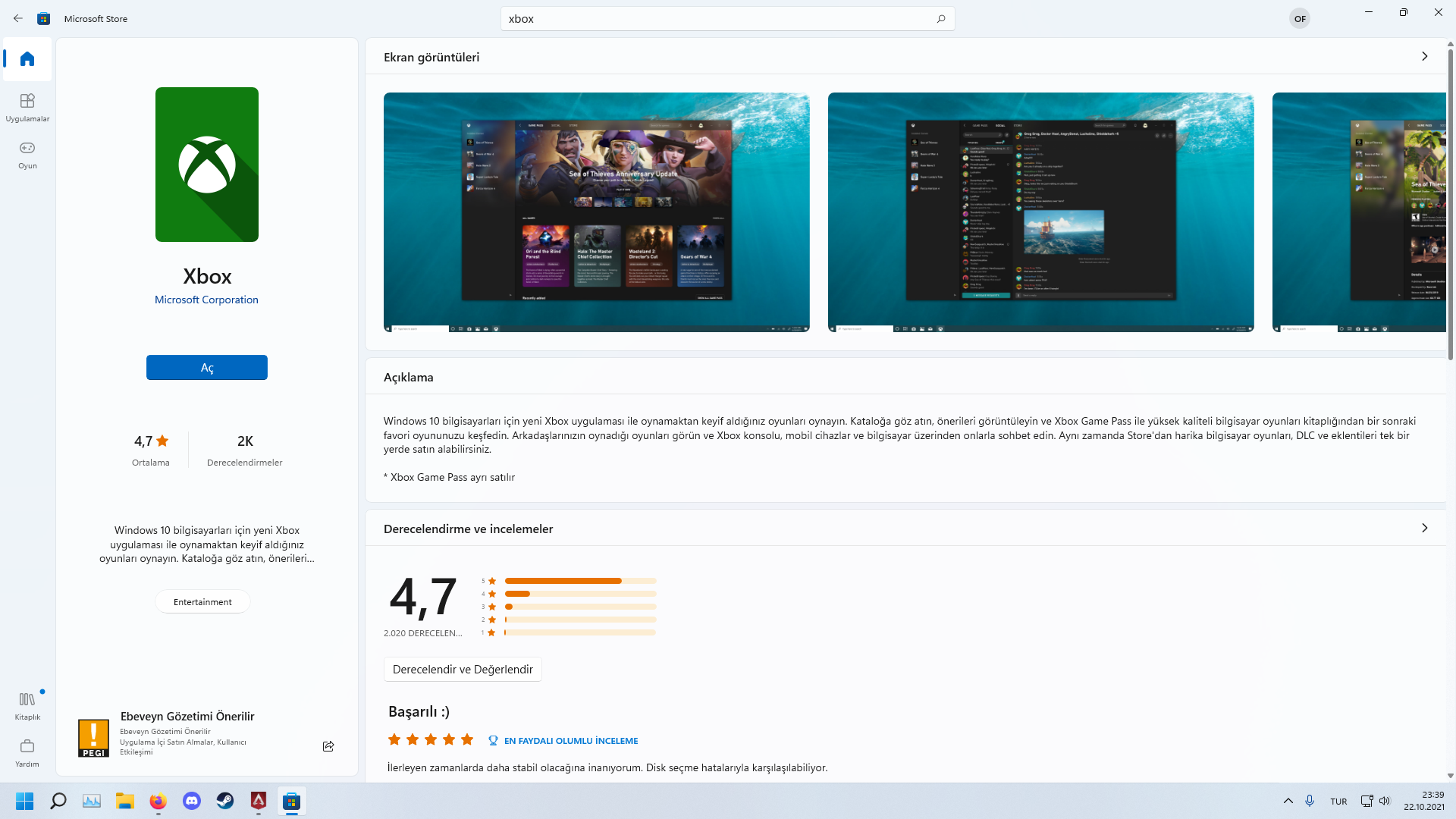 *Benim mağazam Windows 11 mağazası sizinki 10 ise arayüz farklı olabilir ama indireceğiniz uygulama aynı.