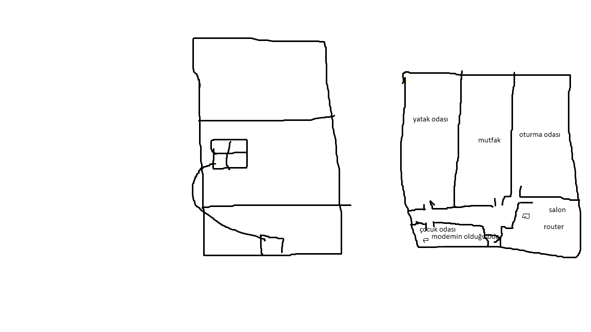 Evin kat planı ve oda planlaması bu şekilde kaba taslak