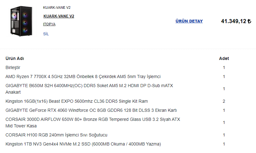 Günümüz şartlarında güzel bir sistem olduğunu düşünüp eklediğim diğer sistem AMD işlemci AMD ekran kartı kısaca saf güç teknoloji vs olmadan oyunlarda 4060-4060 Ti olan benzer fiyatlı toplama sistemlerinden 30-40FPS daha üstün.