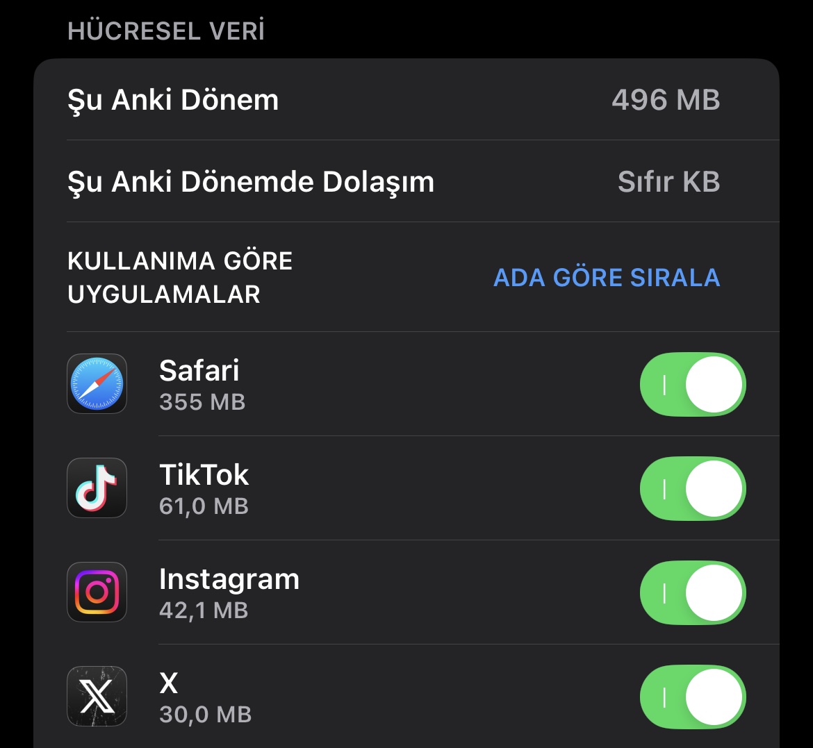 4,5G ile 30 dakikalık kullanım bu kadar internet yedi, hayır Safari'de de makale okudum iki üç sitede gezdim video falan da izlemedim neden böyle?