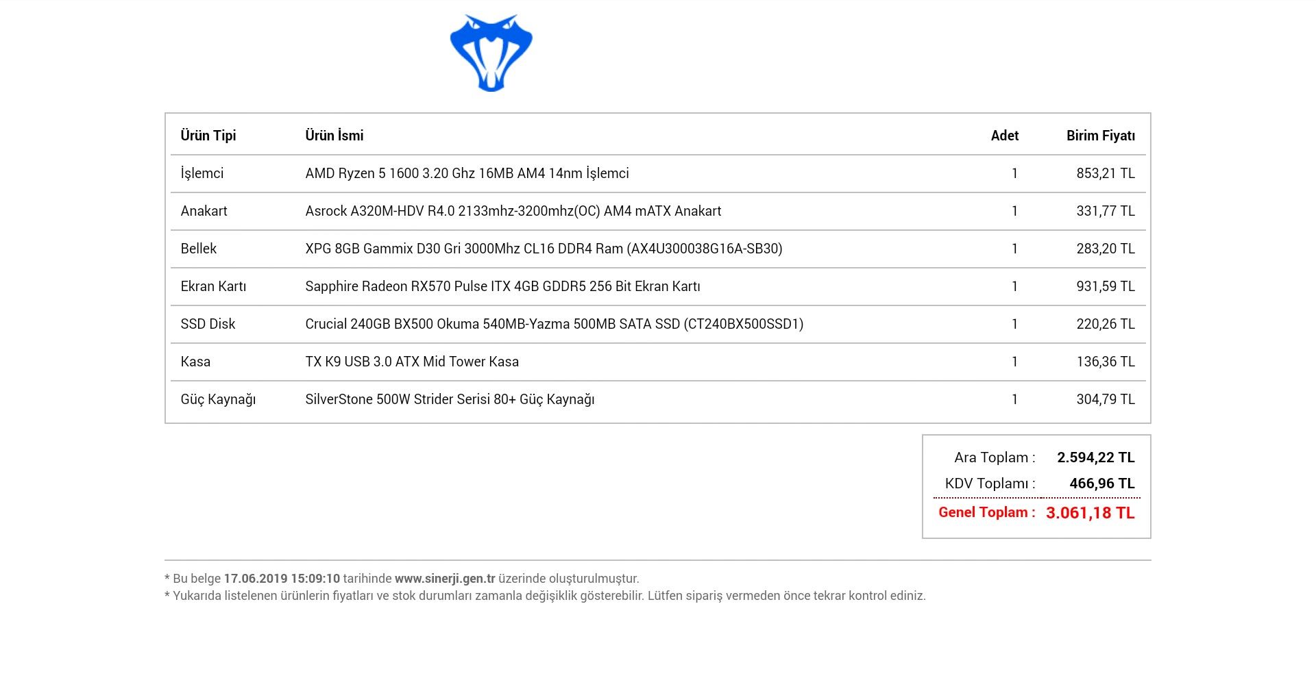 Arkadaşlar merhaba, bir tanıdığım bu ay PC alacak, bütçesi 3000TL, ona bu sistemü önerdim. Sizce iyi mi? Not: Sadece Inventus, İncehesap, Yukko, Sinerji, Teknobiyotik sitelerinden alabilir kendisi.