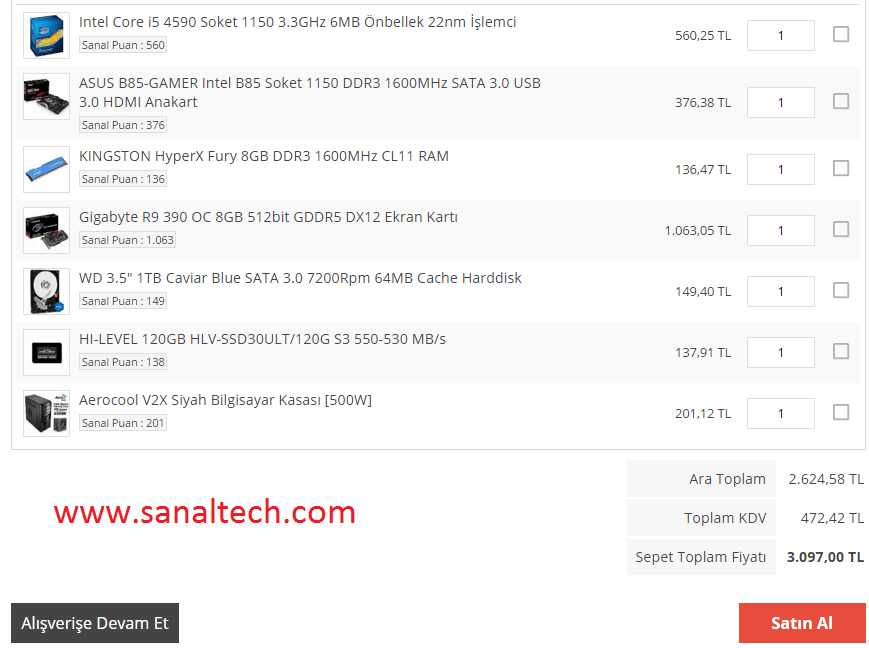 kendim topladıgım parçalar şunlar ( Bütçem 3000 tl )