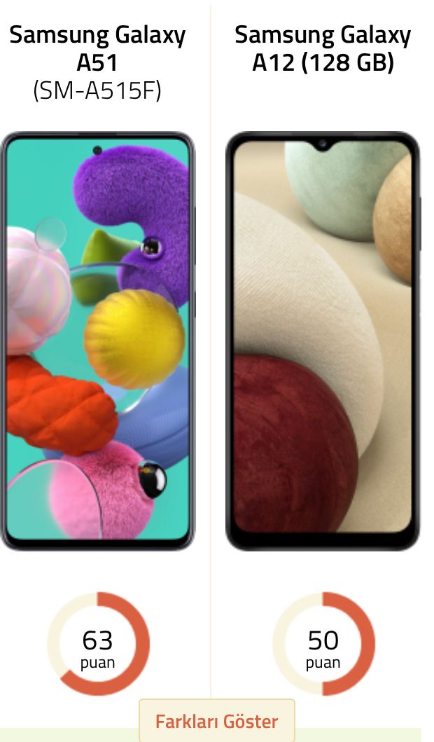 Neredeyse her konuda A51 önde.