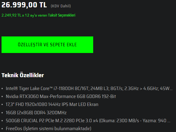 elinizde 3060lı laptop öneriniz var mı?