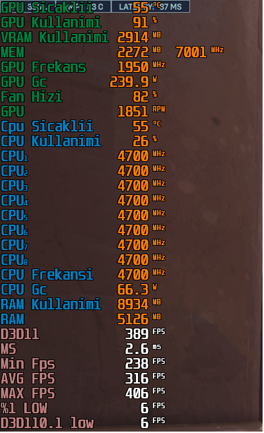 Merhaba, oyunda Ultra Low bütün ayarlarda denedim. Çok yüksek FPS alıyorum aslında ama anlık olarak %1 Low 20FPS oluyor ve rahatsız ediyor. Sürücüler güncel, Windows'ta güncel ama bu drop olayı neden oluyor bir türlü çözemedim.