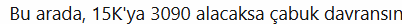 Bu arada, 15K'ya 3090 alacaksa çabuk davransın, çünkü çok yok onlardan da. İkinci el piyasası 20-25K olarak geçiyor.