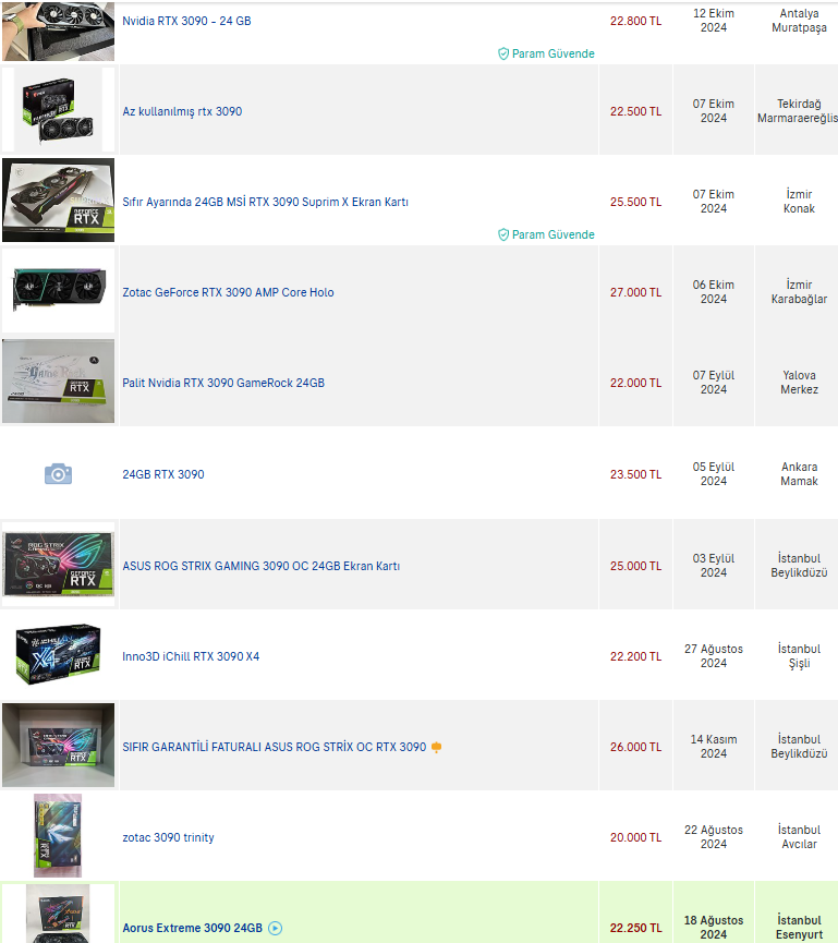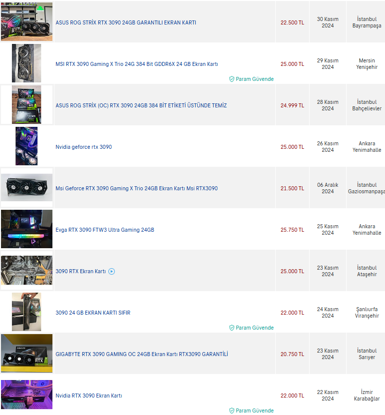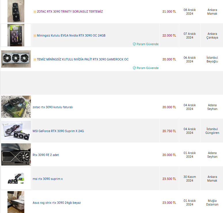 İkinci el diye seçenek belirtmemiş arkadaş, sıfır 3090 olarak da en uygun 39 bin TL olarak gözüküyor. Gerekirse 10 katı ucuz olsun, kimisi yine de inatla ikinci el almam diyor. Bir de bana "beğenmedim" atmışsınız da, neye göre?