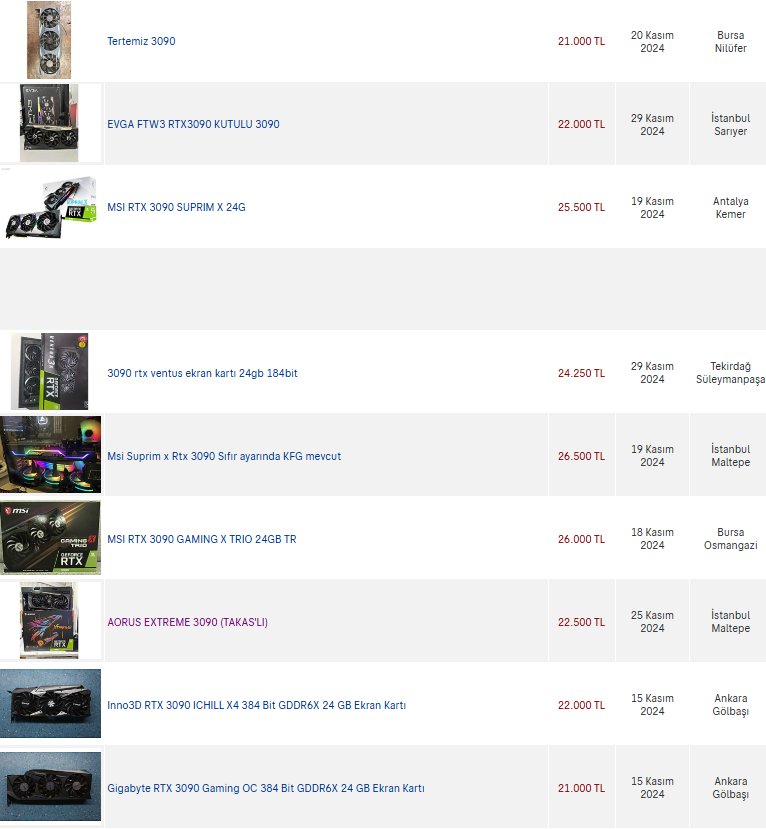 Sıfır olarak 3090 niye alsın? Aynı güçte 4070S'ler 24K'den başlıyor.