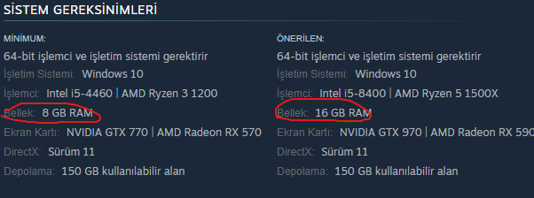 16GB RAM her oyun için yeterli günümüzde ama birkaç yıla değişir gibi.