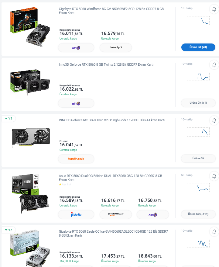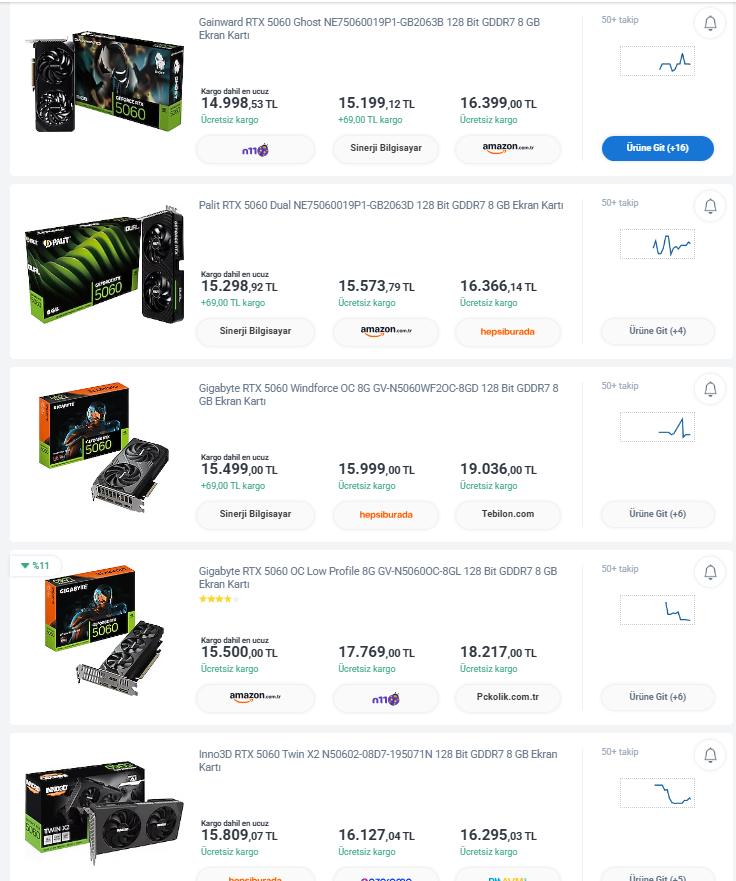 Ekran kartı 5060 almayı düşünüyorum 15-17k arasında bir sürü farklı markalar var hangisi almam daha mantıklı olur.