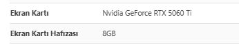 16 GB hali olsa tamam diyeceğim de 8 GB VRAM'li asla alınmaz.