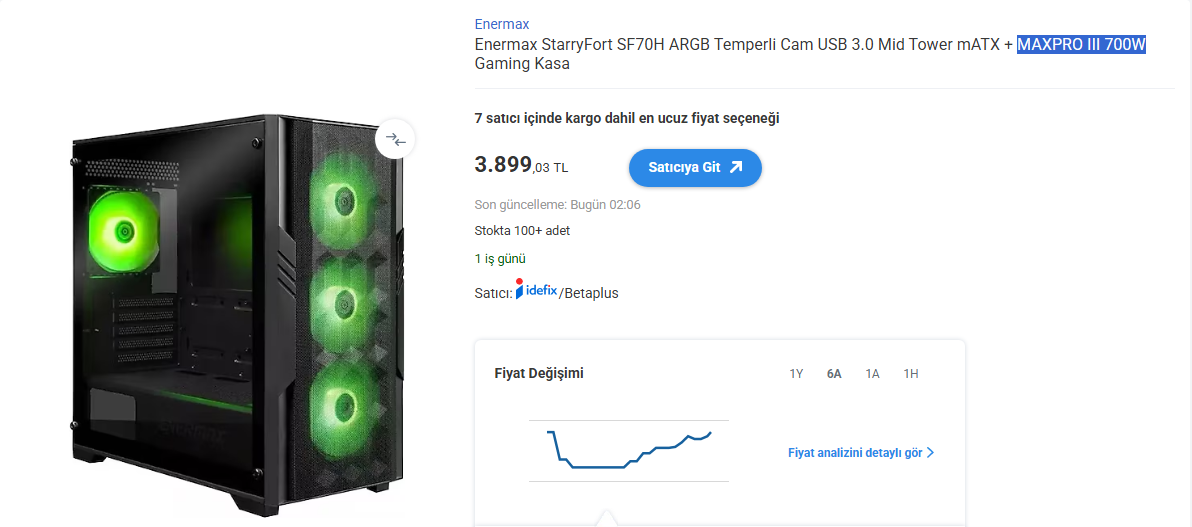 7. Kasa/PSU: ENERMAX Starryfort SF70H/MAXPRO III 700W - 3900 TL​