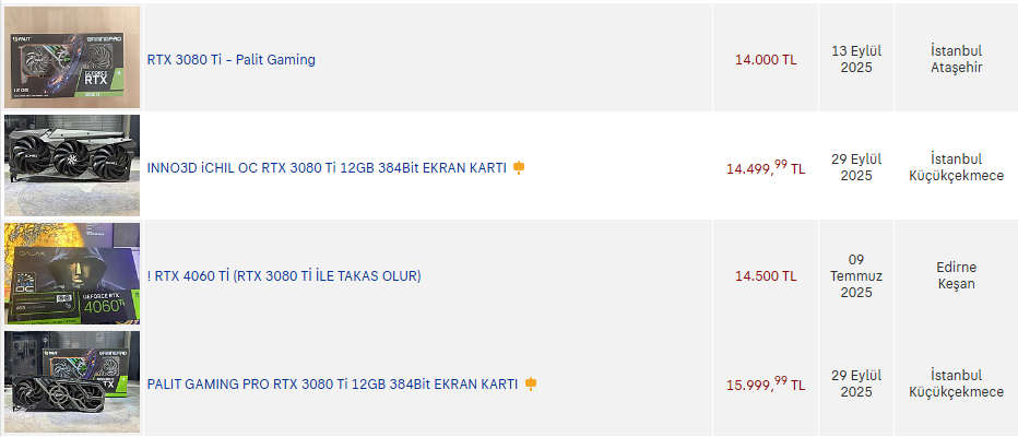 3. Ekran Kartı: RTX 3080 Ti - 15000 TL​