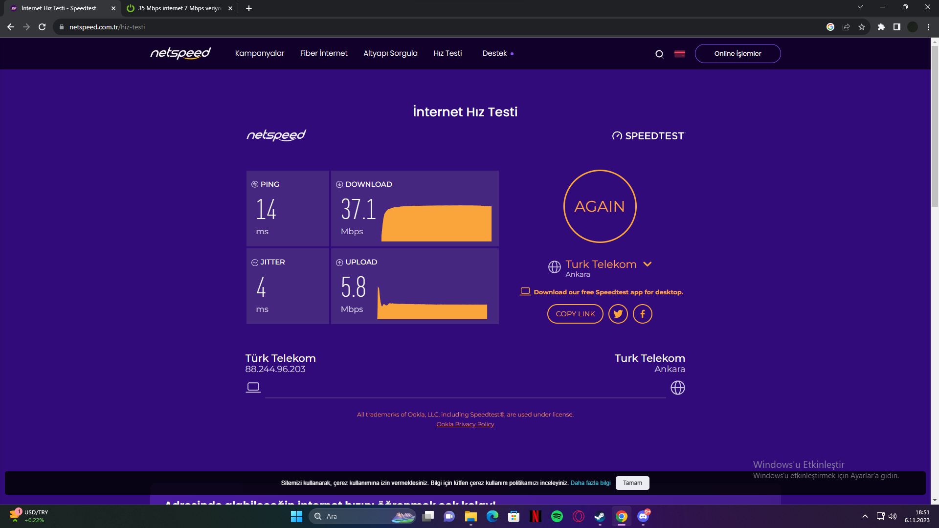 Kral internetinde sıkıntı yok, 35mbps ortalama 4MB/s indirme hızı verir. 8Mbps = 1MB/s diyebiliriz.modem değerleri