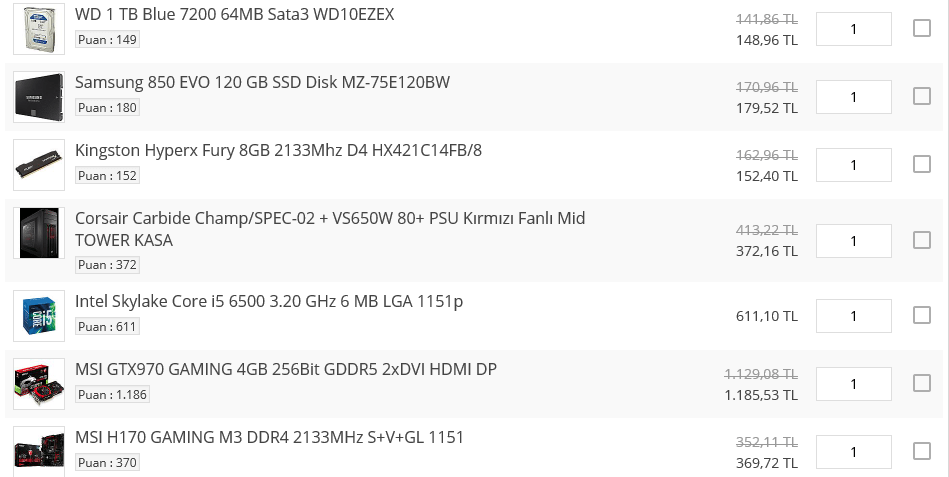 Al bakalım. Bu sistemi yaz ve o Vatan çalışanına söyle. Ayrıca illaki MSI şart değil. Onu da Vatan çalışanı söylediyse nedenini bilmek istiyorum. Sen illaki Z170 alıyım diyorsan buyur: