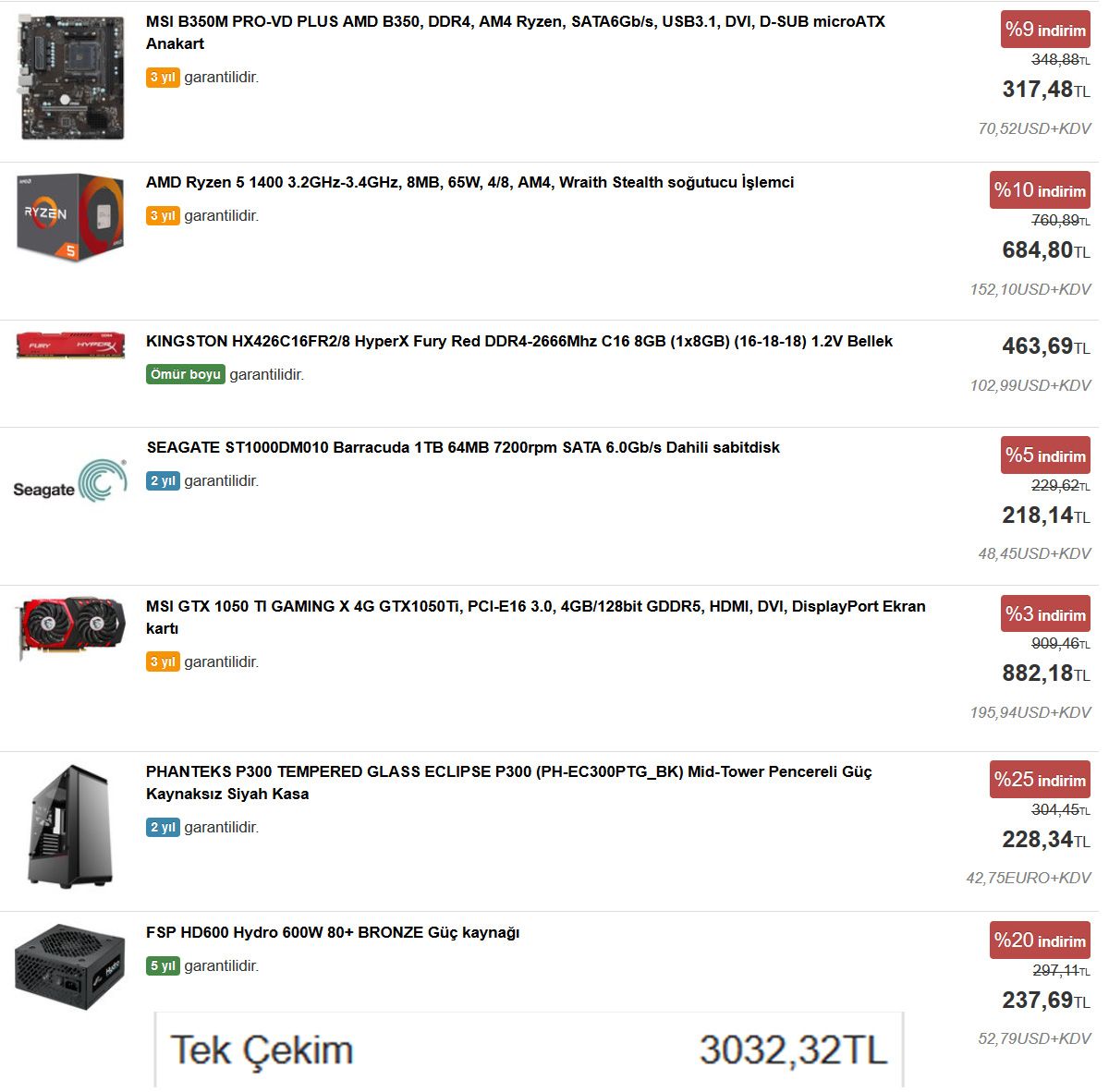 Sistem hiç güzel olmamış. Power Boost markasını tavsiye etmiyoruz. İlerleyen zamanda Overclock ya da yükseltme yapılacağı zaman A320 hiçbir işe yaramayacak. 2133MHz RAM sisteminn performansını ciddi etkiler Ryzen olduğu için. 1060 3GB'da ciddi kısıtlamalar var. Monitör desen fena değil, alınabilir.AMD Ryzen 3 R3 1300X Soket AM4 3.5GHz 8MB Önbellek 65W 4 Çekirdek İşlemci | ITOPYA