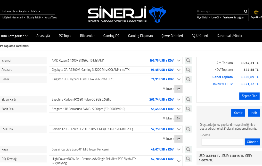 Sinerji den alamam ve kasa vs beğenmedim anakart biraz daha iyi olabilir çünkü ileride upgrade yapabilirimBöyle bir sisteme bakabilirsiniz: