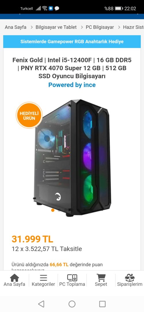 Sizde toplayın o zaman fuul ekipman oyuncu koltuğu dahil 32 bine patlıyor git bir tane kasa için 36 bin TL verebilecek miymiş sor monitördü oydu buydu en az 50 45 k ya patlar..